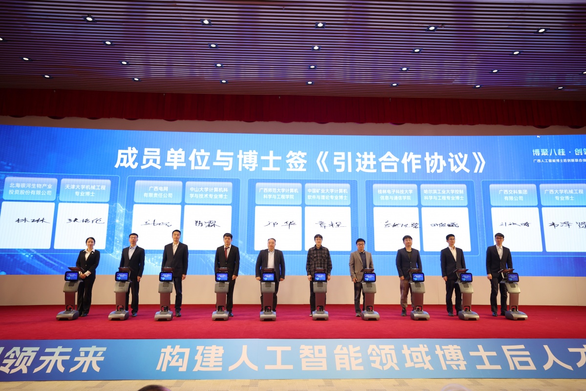 正在人才引育方面,10位拟进坐到广西处置人工智能范畴研究的博士取博联体单元签定引进合做和谈。牵头组建博联体,